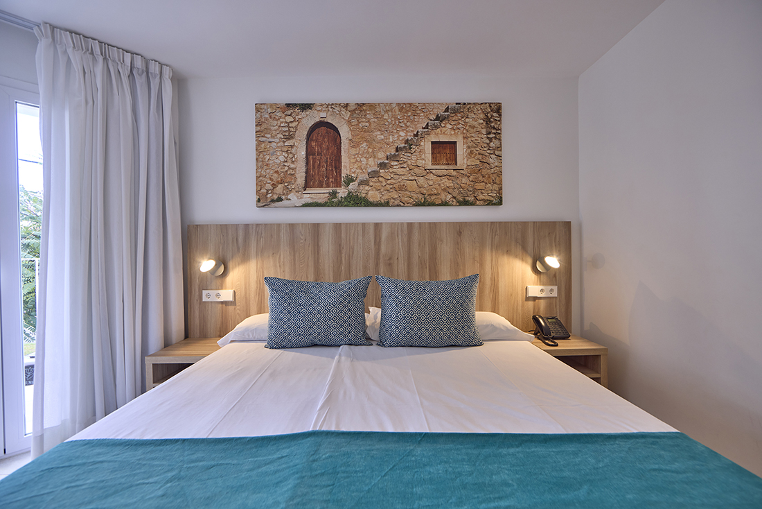 Unsere Premium-Doppelzimmer zeichnen sich durch ihre Geräumigkeit und ihren Komfort aus, um Ihnen einen unvergesslichen Aufenthalt in Cala d'Or, Mallorca, zu bieten. Sie sind hell und elegant und vereinen mediterranes Design und Funktionalität mit Serviceleistungen wie kostenlosem WLAN, Schreibtisch und Safe.
